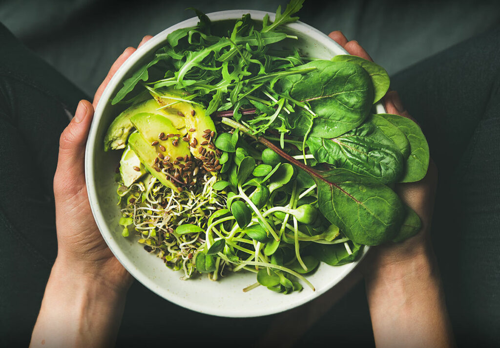 • Greens and vegetables for antioxidants and fiber