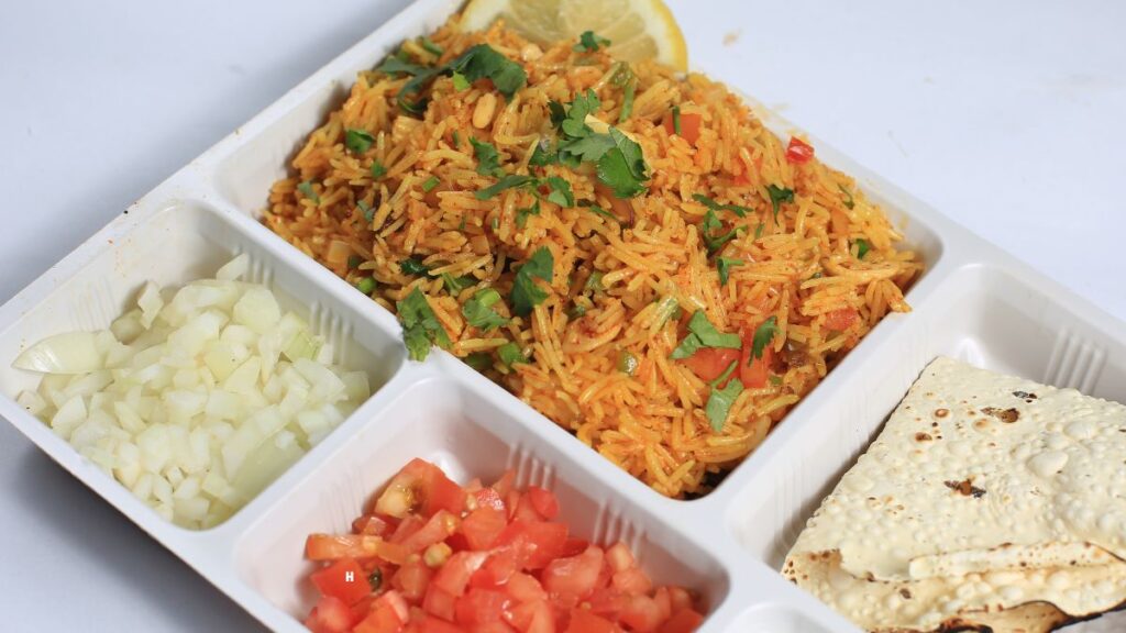 - “Spiced basmati rice with meat and herbs”