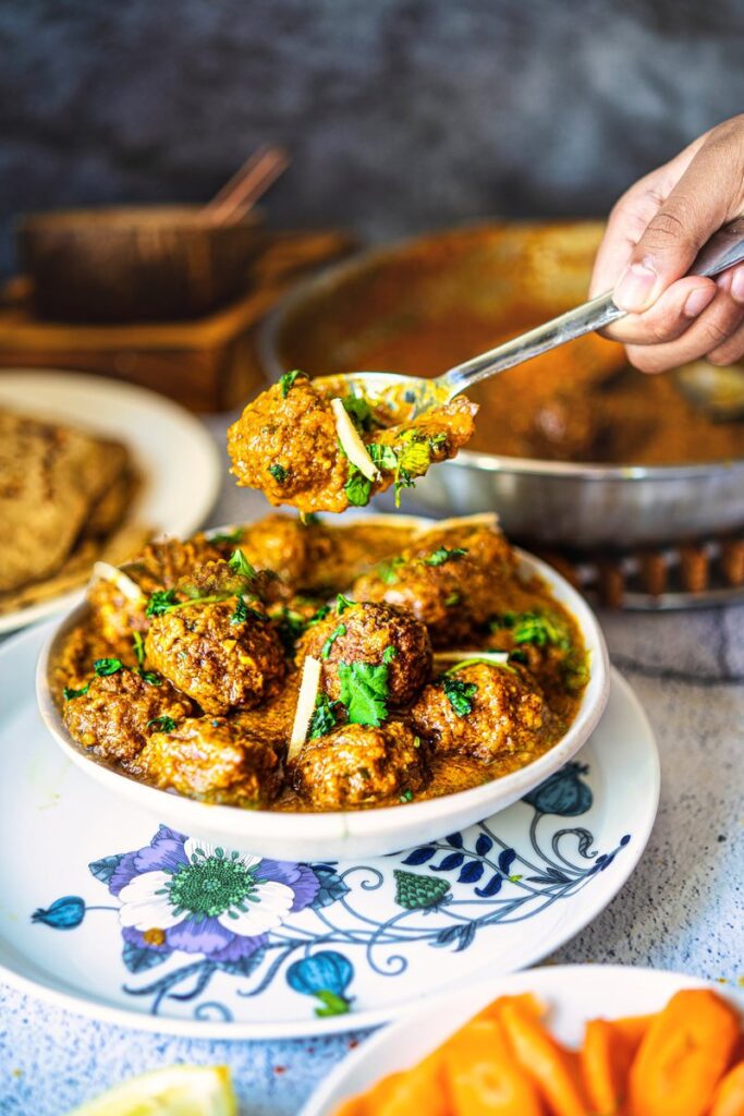 - Gently place the cooked koftas into the curry just before serving.