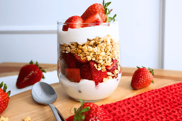 This layered dessert is made with fresh strawberries, creamy yogurt, and granola — great for breakfast or dessert. It’s cooling, filling, and nutrient-rich.