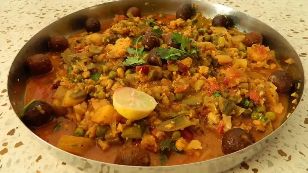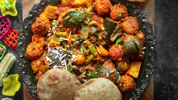 Undhiyu is an elaborate mixed vegetable dish that combines various winter vegetables with a spicy, aromatic masala and fresh herbs. The inclusion of muthia (fenugreek-flavored dumplings) adds an exciting texture contrast. The dish is a celebration of Gujarat’s culinary heritage and is enjoyed with puris, rotis, or rice.