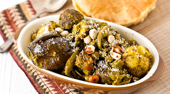 - 1 cup small purple eggplants (brinjals), slit but kept whole