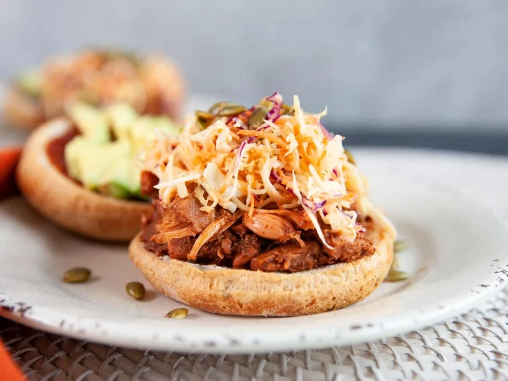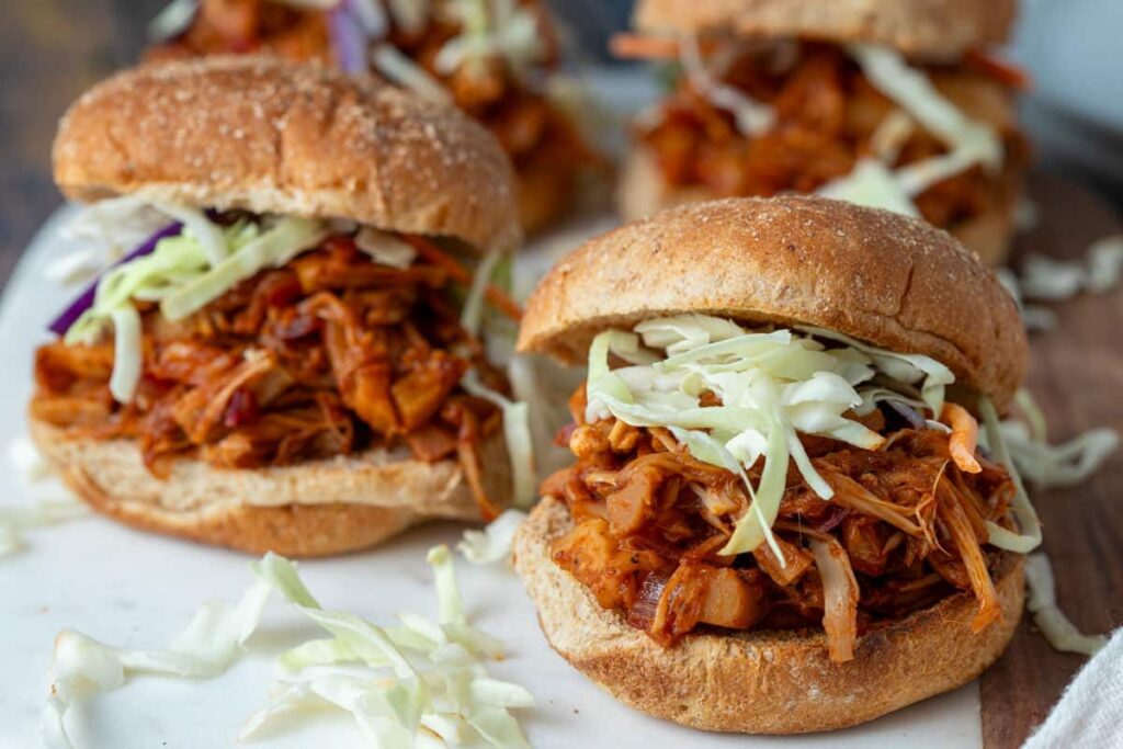 • Classic Sandwich: Pile jackfruit onto toasted buns with coleslaw for crunch and tang.