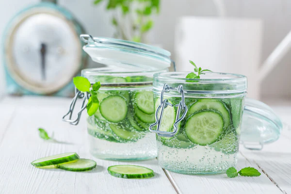 Adequate hydration is linked to clearer, healthier skin. Cucumber’s silica and antioxidants further promote elasticity and reduce puffiness, while mint adds antibacterial benefits that may help with acne.