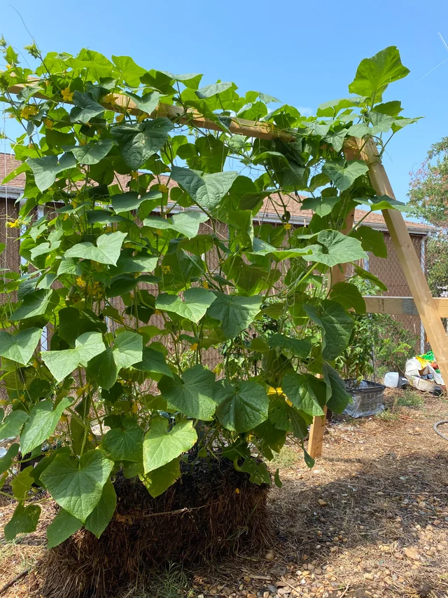 5. Gently guide seedlings toward the structure when they grow 6–8 inches tall.