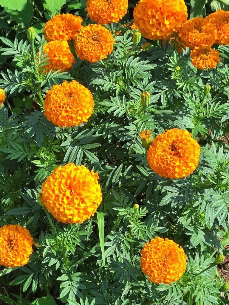 Marigolds release thiophenes, natural compounds that deter nematodes and root-dwelling insects. Planting marigolds around vegetables and herbs can reduce pest pressure and enhance soil health.