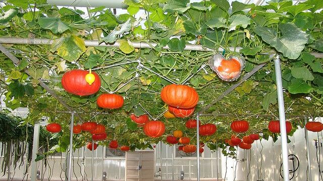 Since the pumpkins hang off the ground, they remain clean and less susceptible to rot or pest attacks.