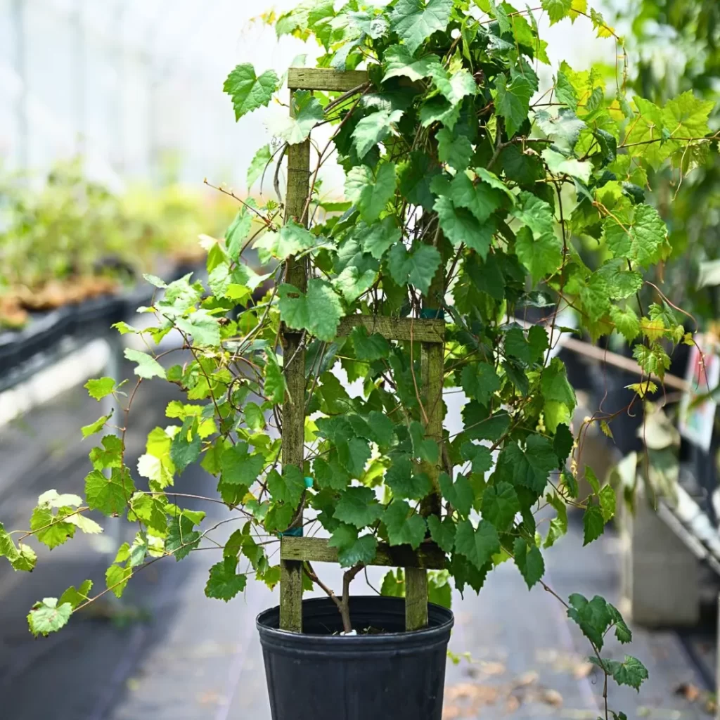 - Make sure the base has holes for water to escape — grapes hate waterlogging.